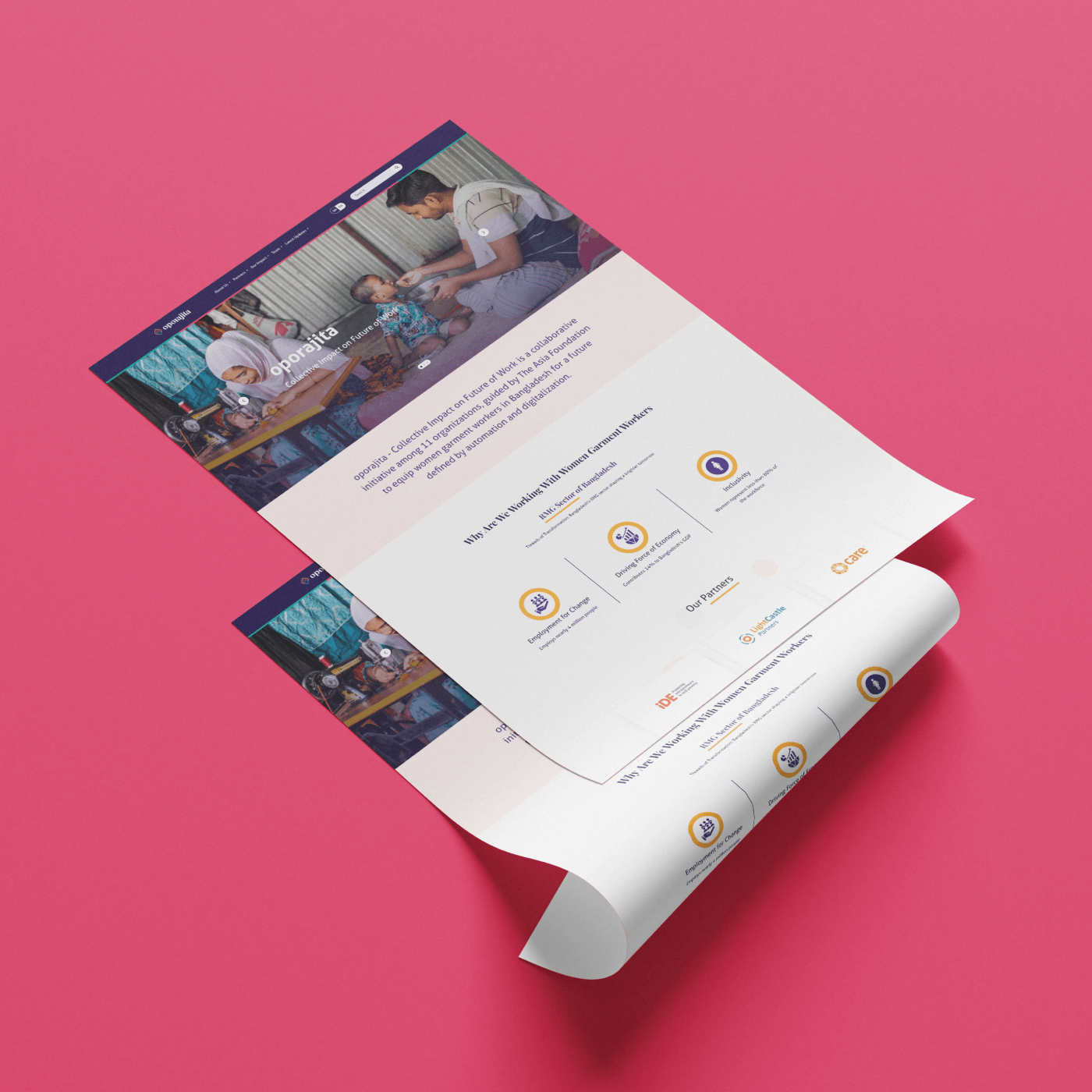 Oporajita is a collaborative platform by The Asia Foundation dedicated to empowering women and enhancing workforce participation. Bringing together diverse organizations and stakeholders, we tackle complex social challenges through a unified vision and coordinated efforts. Our approach includes shared measurement systems for progress, mutually reinforcing activities, and continuous communication to build trust and ensure alignment. Together, we drive collective impact for meaningful change.